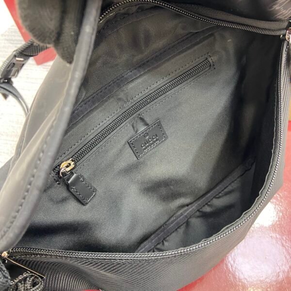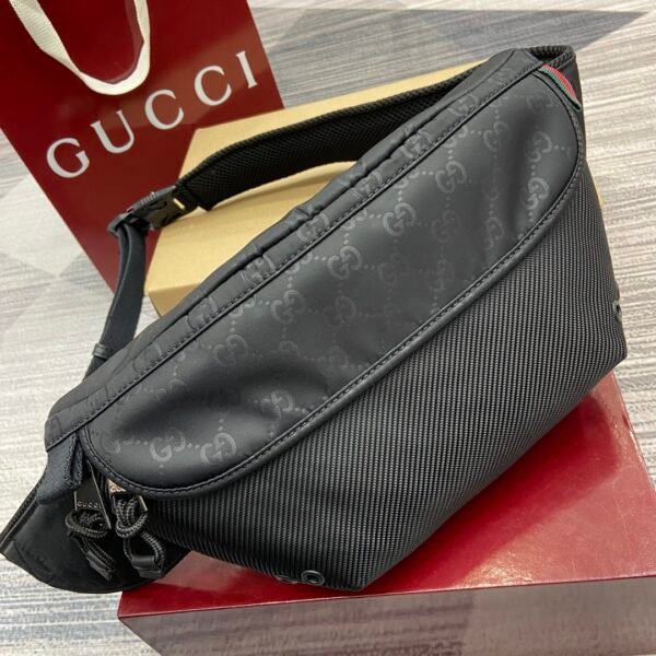 This fanny pack is crafted from soft, durable black nylon and features a GG pattern throughout for a sophisticated finish. Other classic details include red and green webbing details.